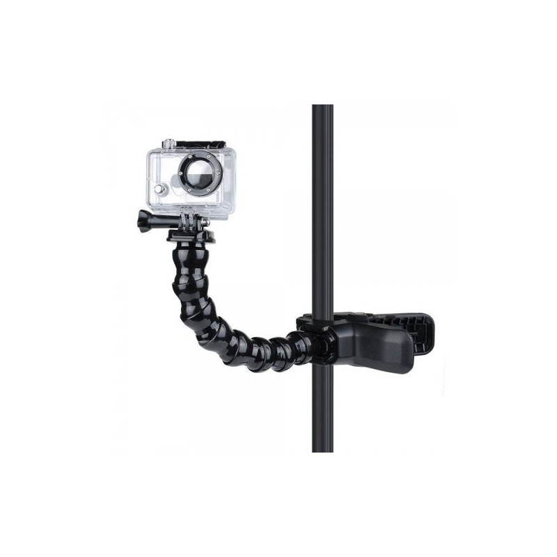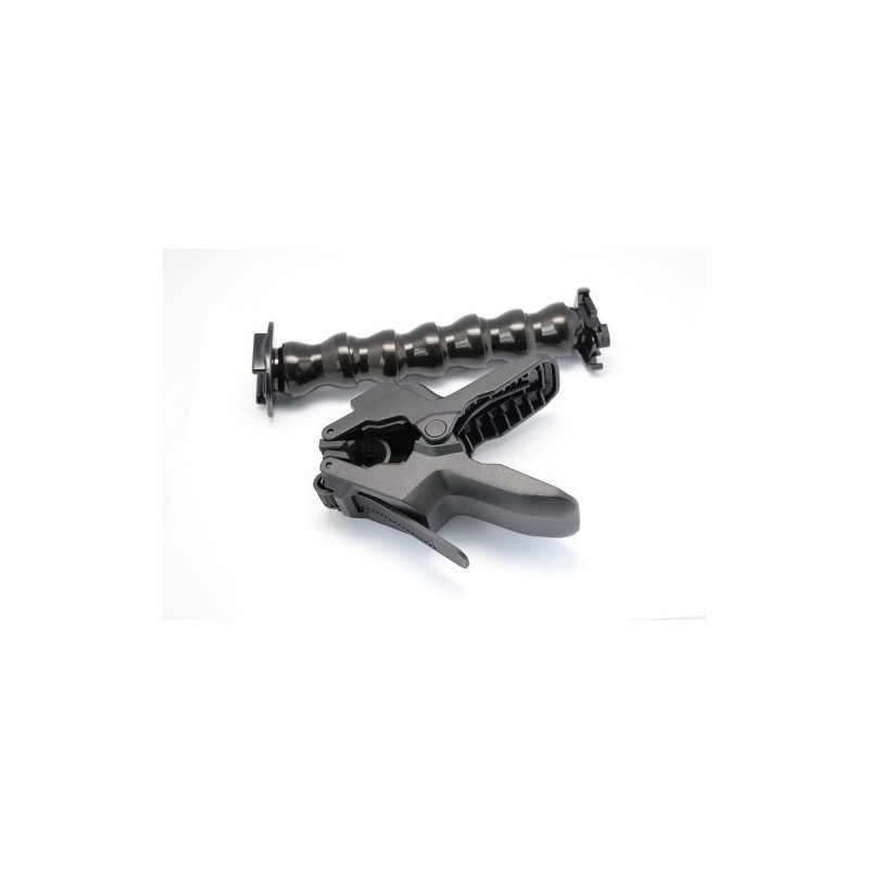 Fija tu cámara directamente a la abrazadera para obtener un montaje de bajo perfil, o utiliza el cuello opcional para conseguir una mayor variedad en el ajuste del ángulo de la cámara. La pinza sujeta de forma segura objetos irregulares y ultradelgados gracias a su diseño innovador.