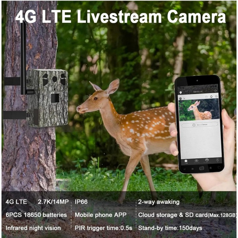 3. Duración de la batería: viene con tecnología de chip de bajo consumo, la cámara de batería funciona con 6 baterías 18650 que duran meses para que pueda ver lo que sucede en la naturaleza sin el estrés del reemplazo frecuente de la batería.